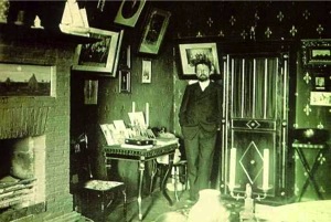 Chekhov standing in his study in Yalta. Levitan’s sketch is visible on the left above the fireplace.
